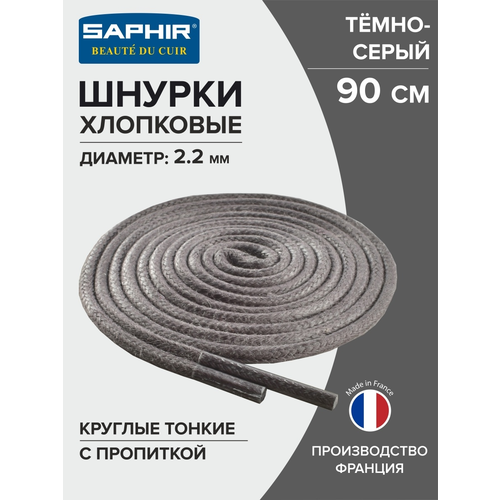Шнурки Saphir хлопковые круглые тонкие с пропиткой 90 см, диаметр 2,2 мм, цвет 15 темно-серый