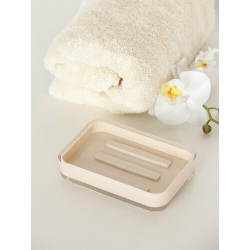 Мыльница AMOBERG, дорожная, с решеткой и крышкой, пластик, черная, 12х8х5 см