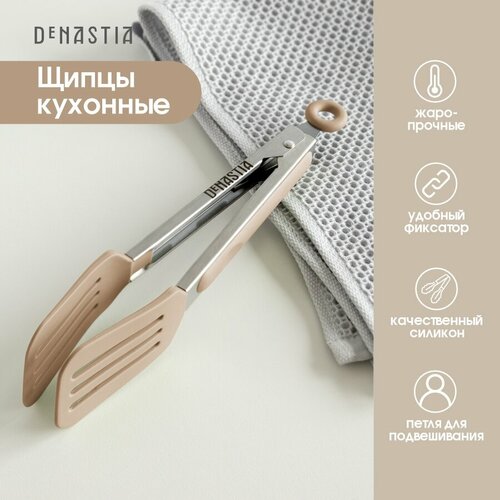 Щипцы для кухни DeNASTIA, 33,5х3,5 см, нержавеющая сталь и силикон, бежевые