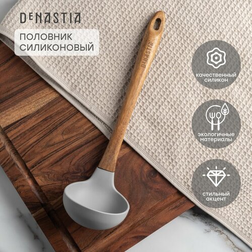 Половник DeNASTIA с деревянной ручкой 31x8x1,6см, силикон + акация, серый