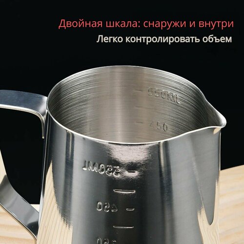 Молочник (сливочник), нержавеющая сталь, 350 мл / Питчер для молока из стали / Мерный стаканчик