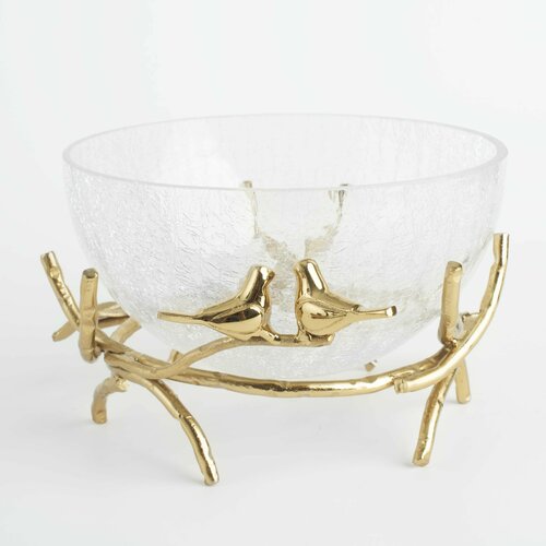 Блюдо глубокое, "Kuchenland", 21х9 см, на подставке, стекло/металл, золотистое, Птицы, Fantastic gold