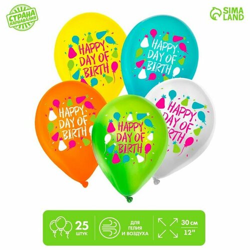 Шар латексный 12" «Счастливого дня рождения», колпаки, 25 шт.