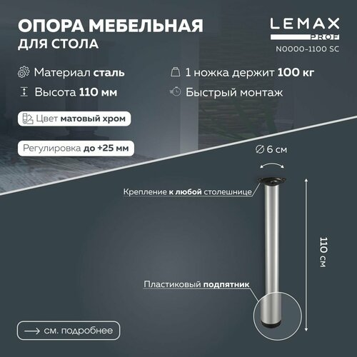 Мебельная опора регулируемая Lemax prof 1100 мм / Ножка для стола металлическая, цвет матовый хром.