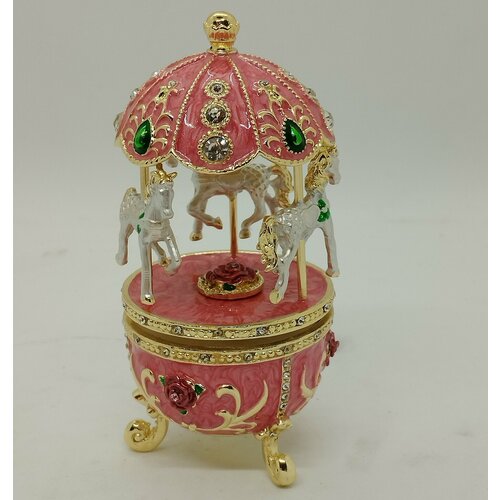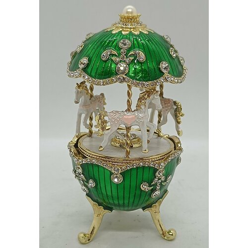 Шкатулка Яйцо в стиле Фаберже "Ландыши" 9 см Синяя / Золотистая