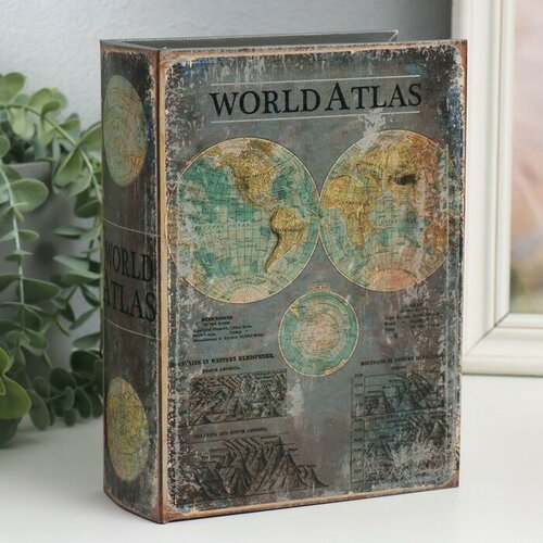 Шкатулка-книга дерево, кожзам "Атлас мира" 6х15х20 см 9809221