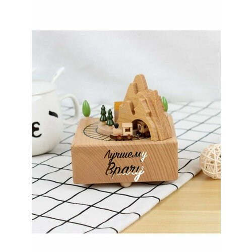 Музыкальная деревянная шкатулка карусель заводная "Поезд в горах". Лучшему Врачу