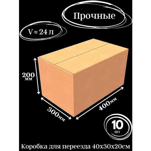 Картонные коробки для переезда и хранения 40*30*20см, 10 шт
