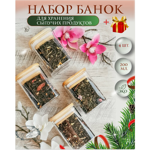 Набор баночек для сыпучих продуктов "Owl Sov", 4 штуки, 200мл, хранение на кухне, банка квадратная для чая