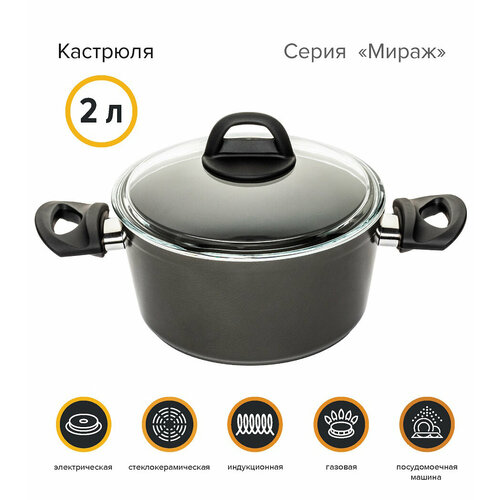 Серия "Мираж" - это алюминиевая посуда с экологически безопасным многослойным покрытием. Толщина стенок - 2,7 мм. Дно – индукционно...