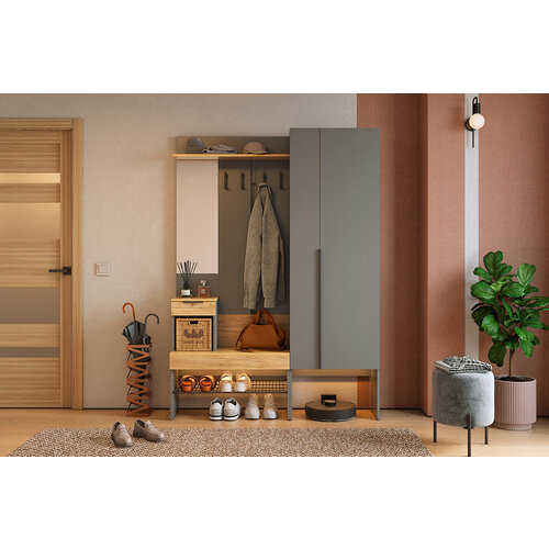 Узкая модульная прихожая "Баско К2", цвет Графит/дуб крафт золотой, 140*35*195 см, Mebelson