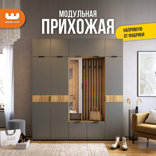 Стенка для прихожей MEBELSON Барселона-1, цвет: дуб млечный/фурнитура: серый