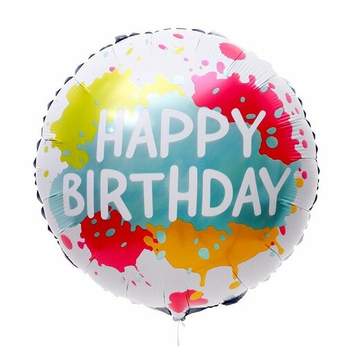 Шар фольгированный18" HBD, круг, акварель(5 шт.)
