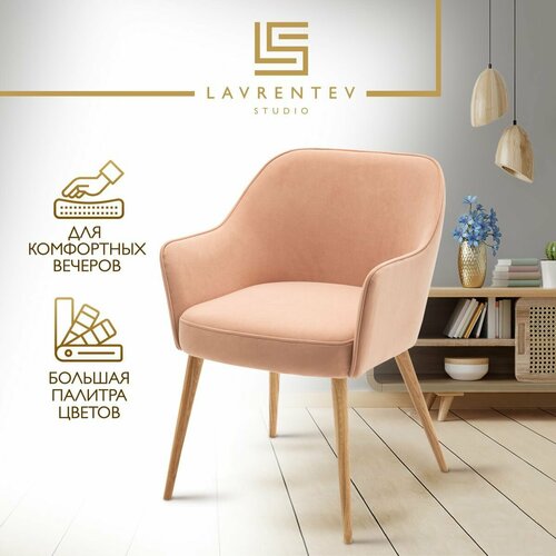 Стул кресло для кухни Лофт 1, мягкий стул с подлокотниками на дубовых ножках, антивандальный велюр цвет пыльная роза