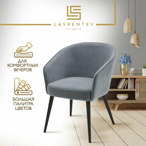 Стул кресло для кухни Лофт 1, мягкий стул на черных дубовых ножках, велюр