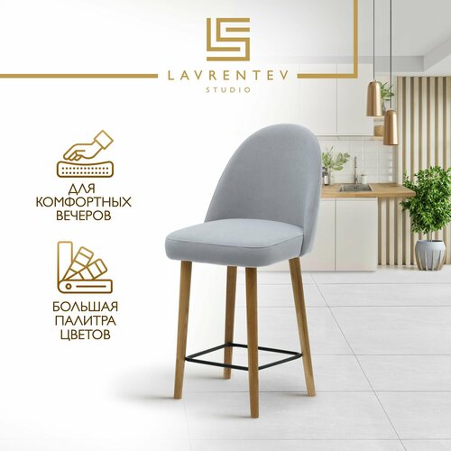 Стул полубарный для кухни высота 60 см Fusion mini 2, на деревянных ножках, велюр цвет светло-серый Lavrentev Studio