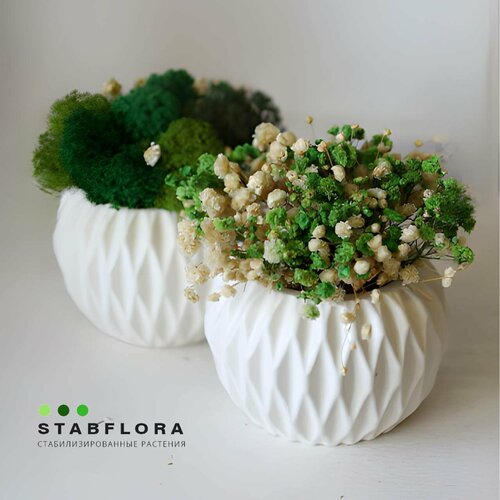 Набор кашпо STABFLORA с мхом, гипс, белый цвет, 2шт
