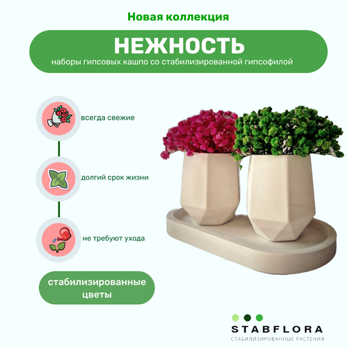 Набор кашпо Романтика Грин со стабилизированными гипсофилой и мхом