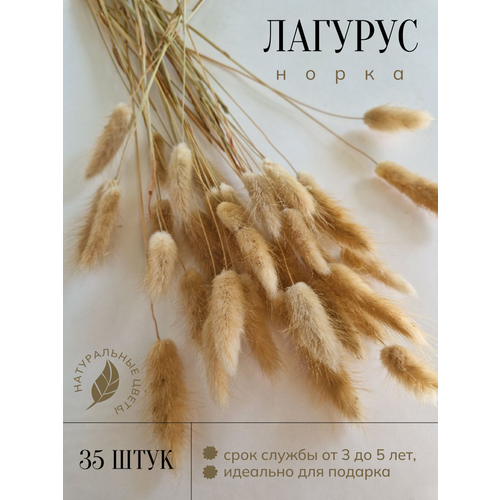 Сухоцвет Лагурус бежевый "Норка" для декора, букет "Зайцехвост" (35 штук)