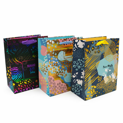 Пакет подарочный с голографией, микс 5цв 24*18см, 10 шт
