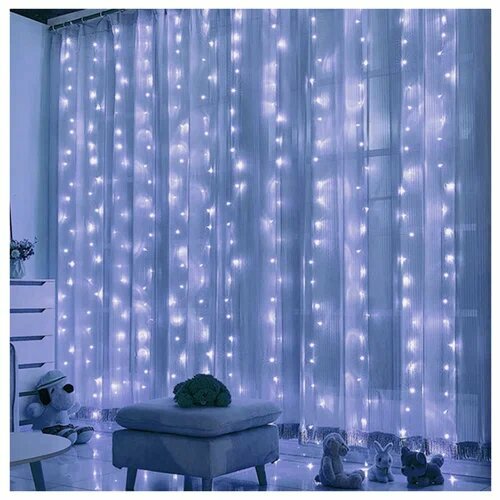 Гирлянда светодиодная Штора Занавес 3x3 м, холодный свет, 8 режимов