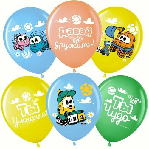 Воздушный Шар (12'/30 см) Грузовичок Лёва, С Днем Рождения, пастель, 7 штук
