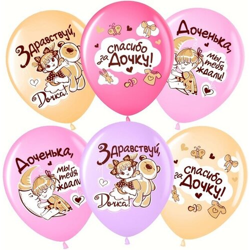 Воздушный Шар (12'/30 см) Спасибо за дочку, Ассорти, пастель, 1 ст, 5 шт.