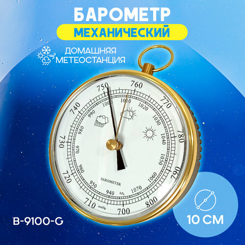 Барометр анероид B 9100 G бытовой, диаметр 100 мм, цвет - золотистый