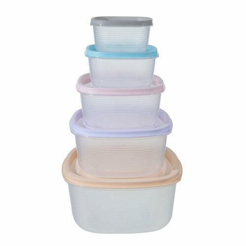 Набор контейнеров, 5 шт, пластик, квадратные, цветные, Frame