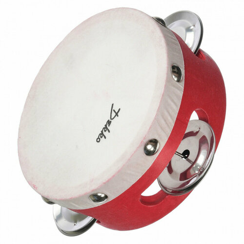 Бубен 10 см DEKKO YTH4-3 RD деревянный корпус красного цвета, кожаная мембрана, 3 пары тарелочек