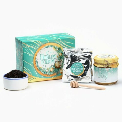 Набор "С Новым годом" чай, мёд, ложка 9864042