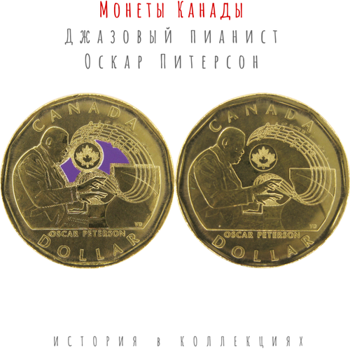 Канада 1+1 доллар 2022 Джазовый пианист Оскар Питерсон обычная+цветная