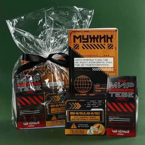 Набор «Мужик»: чай чёрный с лимоном 50 г, печенье с предсказанием 48 г (8 шт. х 6 г), ежедневник 80 листов (комплект из 5 шт)