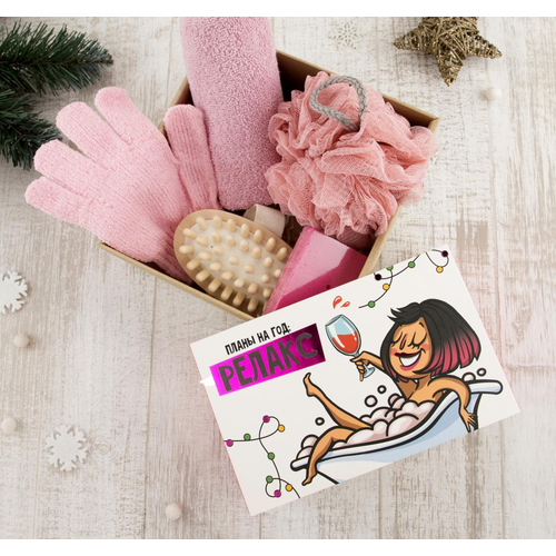 Новогодний подарочный набор "Планы на год", полотенце 30х60 см и банные аксессуары