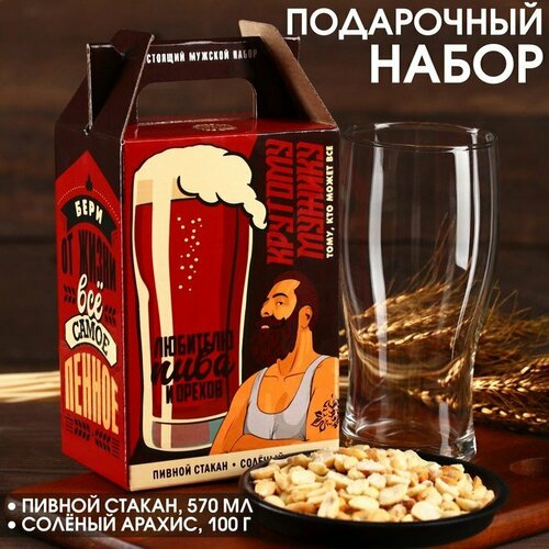 Подарочный набор «Крутому мужику»: пивной стакан 570 мл, солёный арахис 100 г. (комплект из 4 шт)