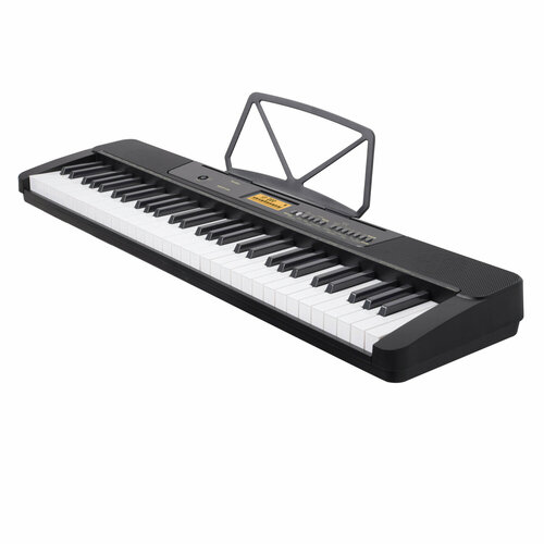 черныйЭлектронный синтезатор Tesler KB-6160 - это доступный музыкальный инструмент, который отлично подойдет как новичкам, так и тем, кто уже умеет играть на клавишных. Удобный интерфейс инструмента упростит обучение игре: к вашим услугам дисплей для отображения нот и аккордов, разъёмы для подключения различных полезных гаджетов, а еще клавиши с подсветкой, с которыми можно начать играть, даже не зная нот. Обилие функций поможет сделать разнообразнее любую творческую импровизацию и быстро создавать аранжировку электронной музыки. Добавляйте различные инструменты в качестве аккомпанирующих: в вашем распоряжении также будут 300 стилей автоаккомпанемента и 430 тембров, громкость которых можно отрегулировать. Настраиваемый метроном поможет научиться держать заданный темп. Предусмотрены функции чувствительности и сустейна, режим разделения клавиатуры, транспонирование, вибрато. Устройство имеет четкую рускоязычную идентификацию функциональных клавиш, ритмов и тембров на панели инструмента - вы легко включите нужный пара