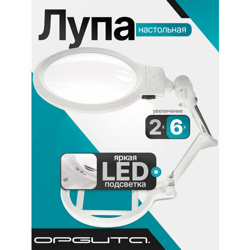 Лупа настольная с подсветкой на гибкой ноге Орбита INL53