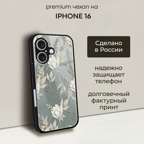 Чехол на Apple iPhone 16 / Айфон 16 с объемным принтом "Белые цветы"