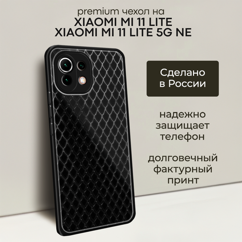 Чехол на Xiaomi Mi 11 Lite/Mi 11 Lite 5G NE / Сяоми Ми 11 лайт/Ми 11 Лайт 5G NE с объемным принтом "Черная чешуя"