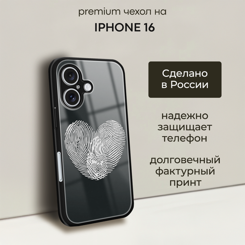 Чехол на Apple iPhone 16 / Айфон 16 с объемным принтом "Отпечаток сердца"