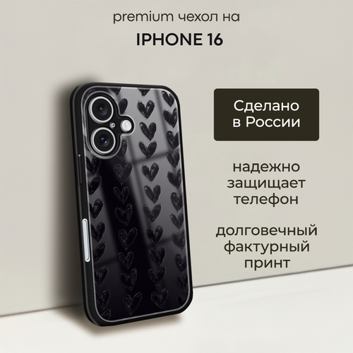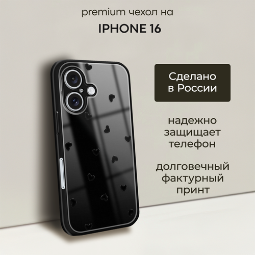 Чехол на Apple iPhone 16 / Айфон 16 с объемным принтом "Маленькие чёрные сердечки"