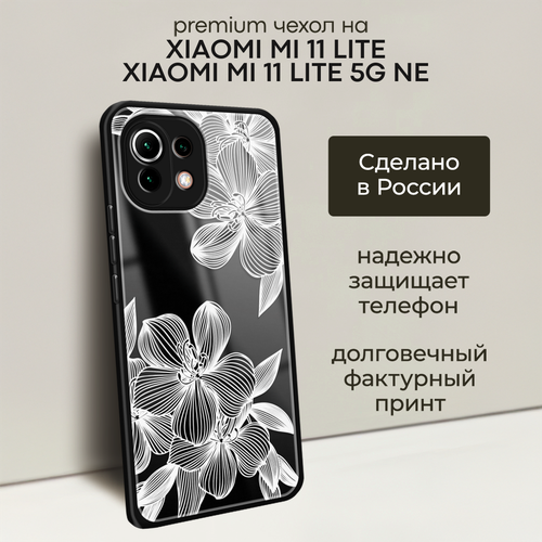 Чехол на Xiaomi Mi 11 Lite/Mi 11 Lite 5G NE / Сяоми Ми 11 лайт/Ми 11 Лайт 5G NE с объемным принтом "Белые цветы"