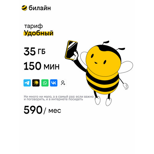 Сим карта sim-карта билайн тариф "Удобный", Краснодар, 35ГБ, 150мин, 590 руб./мес.