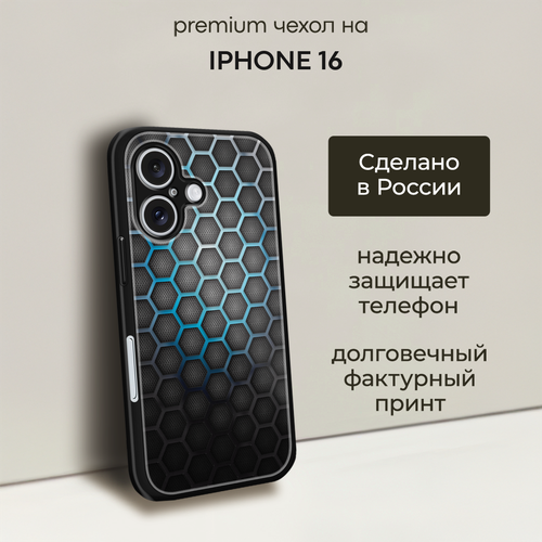 Чехол на Apple iPhone 16 / Айфон 16 с объемным принтом "Бирюзовые соты"