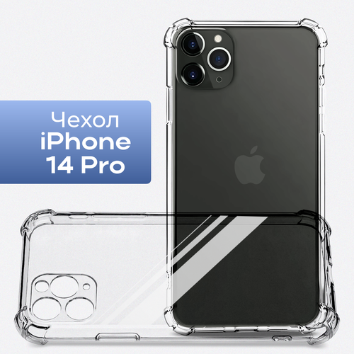 Чехол на Айфон 14 Про / Прозрачный чехол на iPhone 14 Pro с защитой камеры противоударный