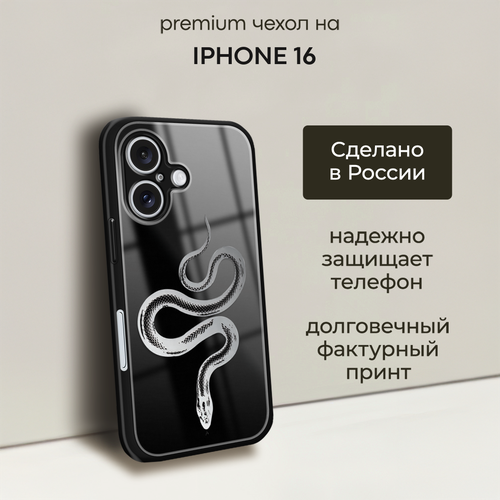 Чехол на Apple iPhone 16 / Айфон 16 с объемным принтом "Змея на черном"