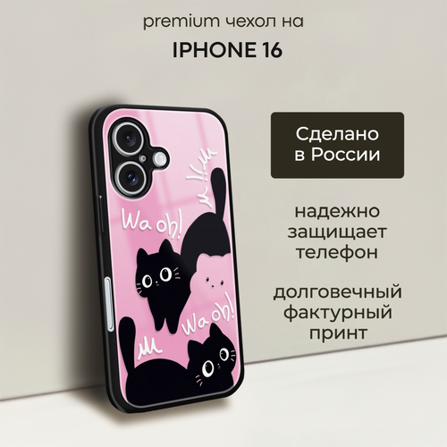 Чехол на Apple iPhone 16 / Айфон 16 с объемным принтом "Черные котики"