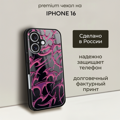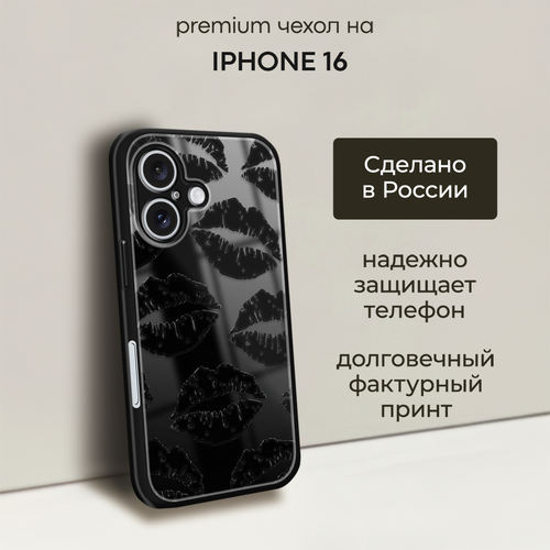 Чехол на Apple iPhone 16 / Айфон 16 с объемным принтом "Чёрная помада паттерн"