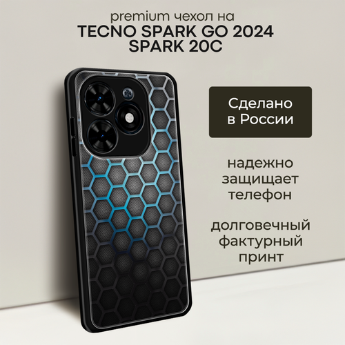 Чехол на Tecno Spark Go 2024/Spark 20C / Текно Спарк Го 2024/Спарк 20С с объемным принтом "Бирюзовые соты"
