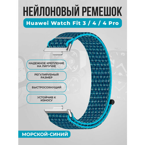 Нейлоновый ремешок на липучке для Huawei Watch Fit 3/4/4 Pro, морской-синий